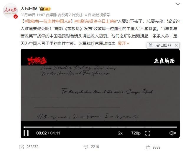 贵寓参考:新浪微博|电影东极岛东说念主民日报|致意每一位血性的中国东说念主
