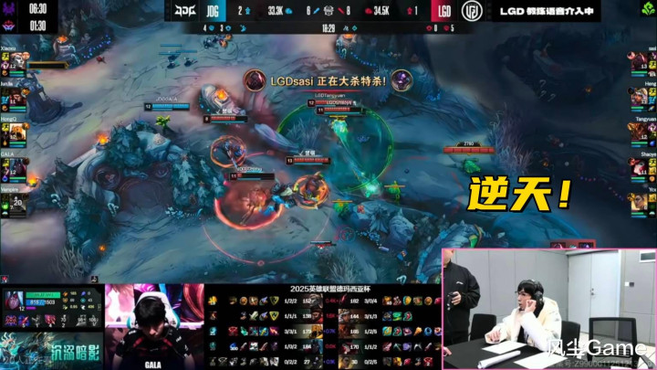 LGD诚然打进了四强,但实力跟JDG差距太大了,线路在比赛的时候,更是演出了搞笑名地方,第一局18分钟支配,LGD就也曾双龙开局了,停牌龙团战,上辅蹲草先秒一个,5打4的情况下,惟有稳少量,稍许拉扯一下,老干爹团战详情是能赢的,效果线路短暂发力,打团介入了语音。
