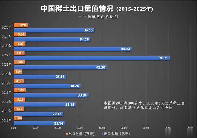 2015-2025年我国稀土出口量值情况