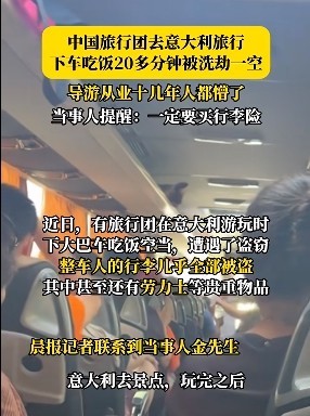 近日,“中国旅游团留心大利被抢掠一空”激勉柔柔。视频中透露,一车东谈主下车20多分钟去吃饭,转头悉数的行李背包,被抢掠一空。