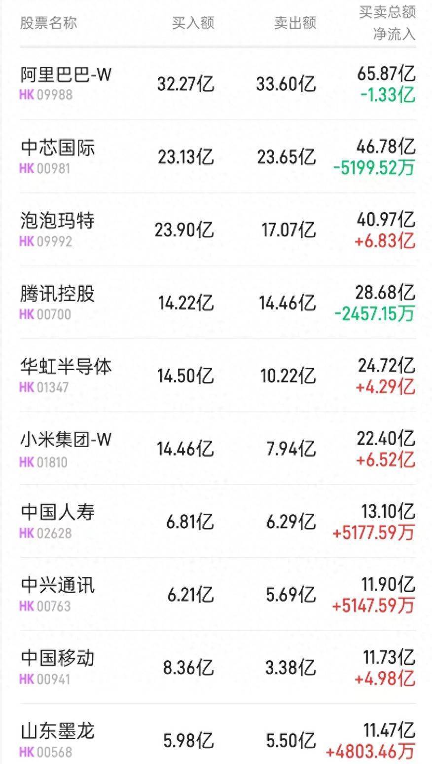 小米集团-W(01810)获净买入4.81亿港元。音讯面上,小米集团涌现,10月17日,公司回购1070万股,每股作价45.9港元至46.76港元,波及总和约4.94亿港元。本年以来该股累计进行12次回购,总共回购3412.52万股,累计回购金额15.37亿港元。