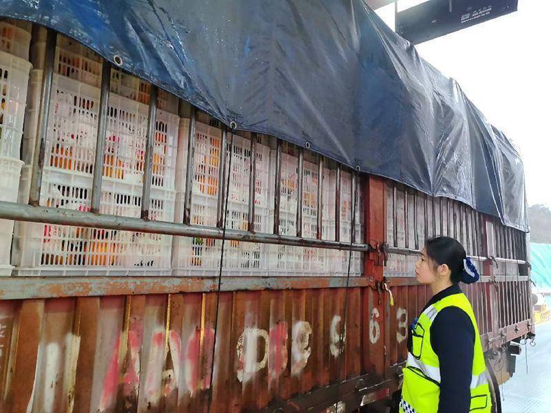 1月4日,满载资中血橙的大货车通过资中西收费站,收费东谈主员对车辆所载货品种类进行查验。蔡林宏供图